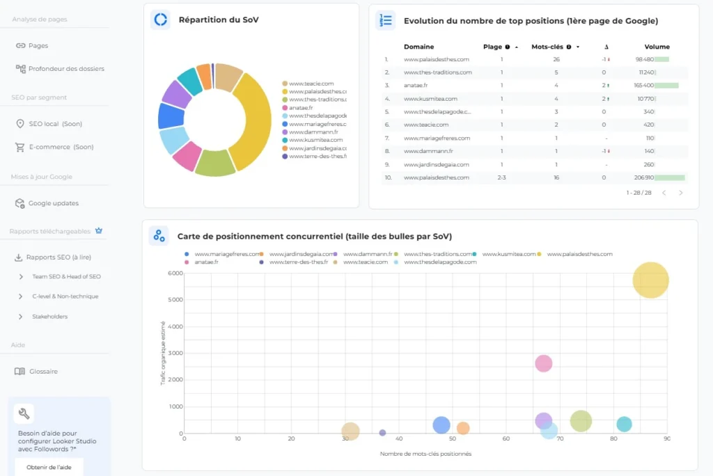 Franchement, c’est là que Followords se démarque vraiment. Leur template Looker Studio est prêt à l’emploi et ultra complet. J’ai pu connecter mes données en quelques minutes et présenter des rapports propres à mes clients sans passer des heures sur Excel. Le gain de temps est énorme, et mes clients adorent la clarté des visualisations.